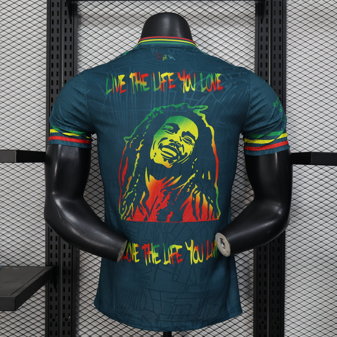 Alliant intensité et style, ce maillot Ajax x Bob Marley bleu foncé est un hommage visuel à la puissance du message « One Love ». Une pièce forte et élégante pour les vrais passionnés.