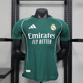 Ce maillot vert profond casse les codes traditionnels tout en mettant en valeur le prestige du club madrilène. Une couleur unique pour une saison pleine d’ambition.